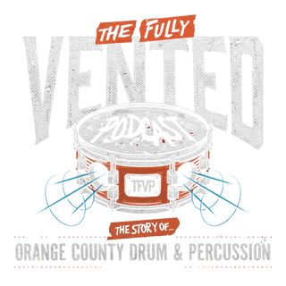 Black zip-up hoodie featuring drum artwork on front chest and "The Fully Vented" logo on back.