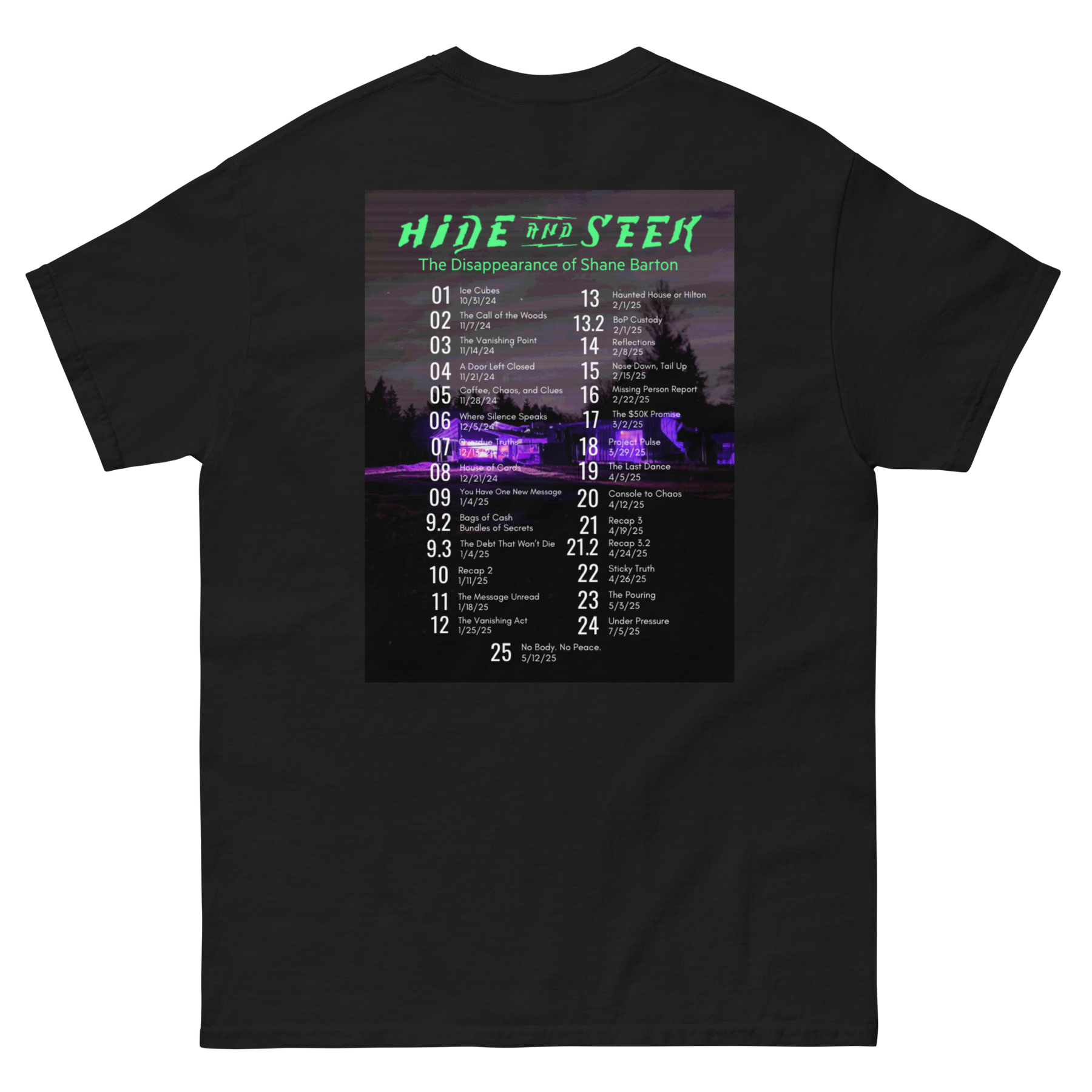 Stay stylish while you're on the search for clues in this tee featuring the episode title list from Season 4.